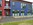 Das Gebäude (Rot und Blau) befindet sich auf der rechten Seite.