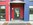 Das Gebäude (Rot und Blau) befindet sich auf der rechten Seite.